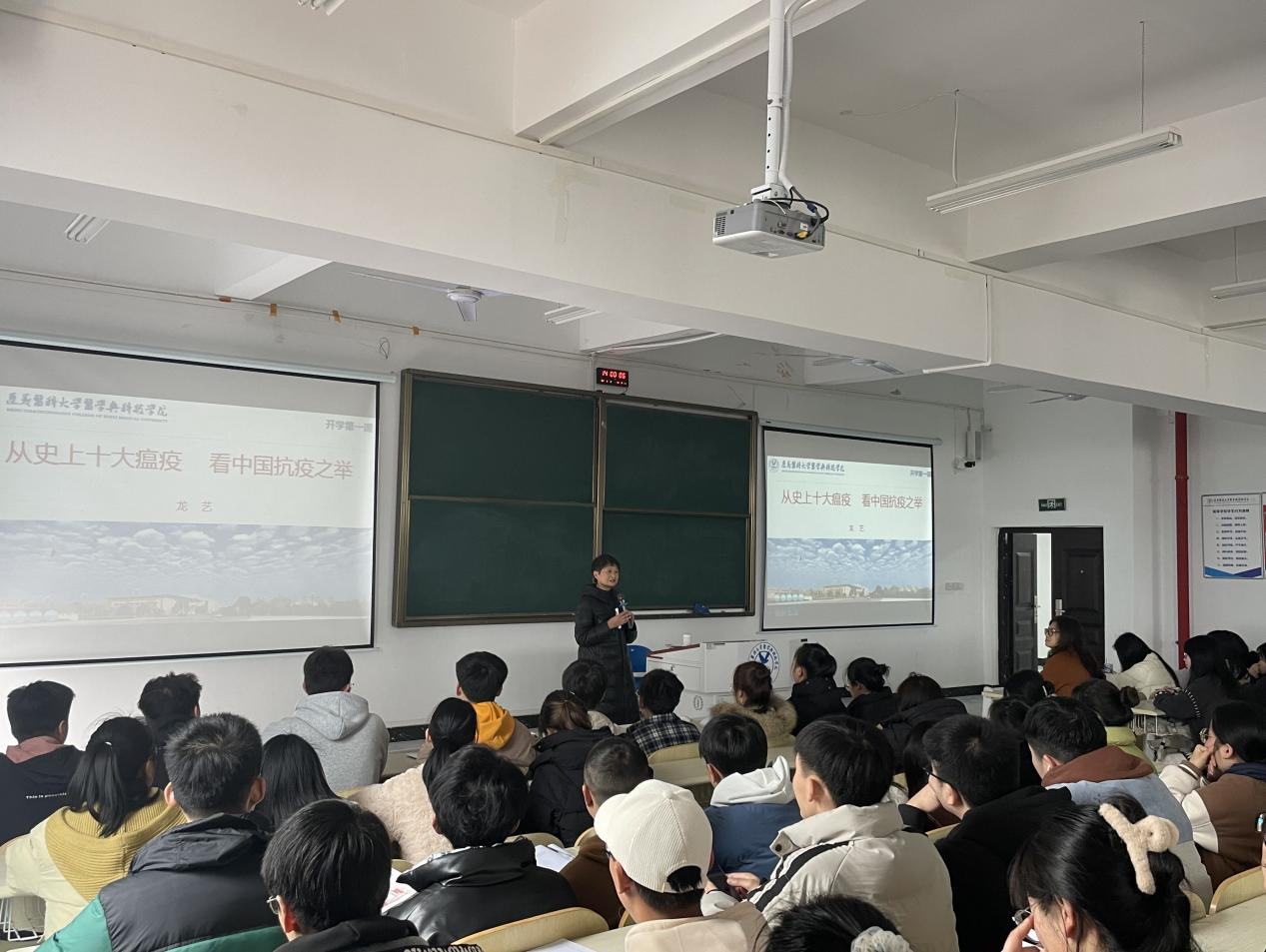 3月2日,学院2023年春季学期“开学第一课”在第三教学楼26阶梯开讲。学院党委书记龙艺以《从史上十大瘟疫 看中国抗疫之举》为题做专题讲座。