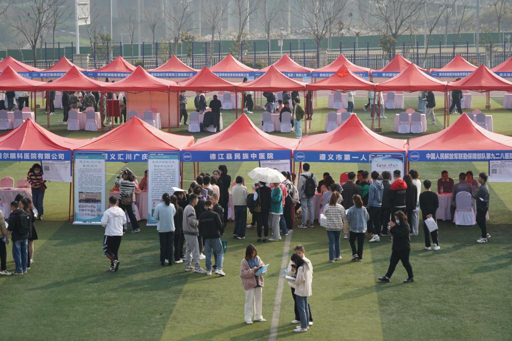 参会毕业生准备充分,携带着精心制作的简历,积极与招聘人员进行交流,并结合自身能力和需求,选择意向单位投递简历。用人单位热情细心地向毕业生们介绍招聘需求、发展前景及薪资福利等情况。本次双选会除现场招聘外,学院还联合遵义市人力资源和社会保障局特设“直播带岗”展台,并在“遵义云劳务直通车”和“遵义市人力资源市场”视频号平台全程直播。据初步统计,用人单位现场接收简历6000余份,初步达成意向500余人,部分毕业生在等待用人单位后续的笔试、面试通知。