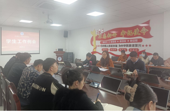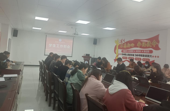 3月23日下午,我院在行政楼419会议室召开三月学生工作例会。学院副院长王中磊出席会议并讲话。学院各职能部门负责人、学生工作部(处)各科室人员、专职辅导员参加会议。会议由学生工作部(处)负责人杨莹主持。