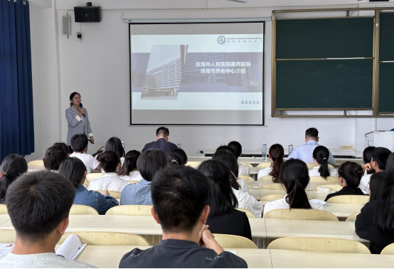 座谈会结束后,珠海市养老中心在学院二十一阶梯教室开展珠遵两地医养照护定向就业宣讲会及面试。中心医照服务部主任颜海萍就医养照护员工作内容、中心环境及中心运营情况做详细说明,中心综合办公室主任黄金刚详细介绍养老中心的组织结构、医院文化、招聘计划和职业发展前景等信息,并对学生提出的问题进行耐心解答。随后,通过养老中心的面试筛选,5月18日下午,我院40名毕业生成功与养老中心签订初步意向协议书。