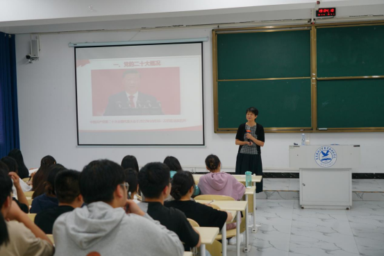 龙艺同志从中国共产党第二十次全国代表大会概况、党的二十大报告主要内容、如何做新时代的好青年这三个方面进行全面讲解。