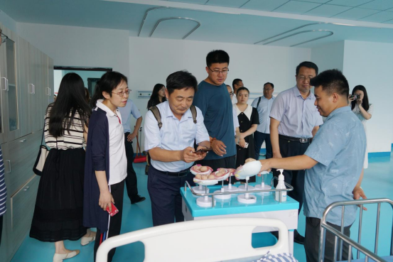 潍坊工商职业学院党委书记葛国文一行实地参观了学院教学楼、护理学院、临床技能中心和基础实验室。