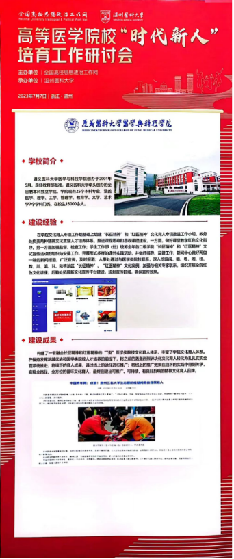 2023年7月7日,由全国高校思想政治工作网举办、温州医科大学承办的高等医学院“时代新人”培育工作研讨会在温州医科大学生物科研楼报告厅举行。参会单位有北京大学、浙江大学、上海交通大学、中国医科大学、厦门大学、南京医科大学、大连医科大学等40余家高校,我院《基于长征精神和红医精神的“T型”医学类院校文化育人体系构建》项目主持人教务处副处长张朝伟应邀参会。
