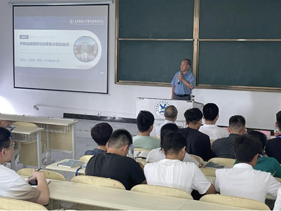 院长葛正龙从学院发展历史、现阶段目标及未来规划三方面作开班发言,并对新教职工提出三点期望:一是要争做好老师,做好学院代言人。树立起“四让三爱”的教育观,成为让学生认可、让自己心安、让学院骄傲、让历史铭记的好老师,做到热爱学生、甘于奉献、治学严谨的教育理念;二是要加强学习,提升能力,当好学生求学路上的引路人。作为高校教师最重要的是加强自身专业能力,学会终身学习,不断加强学习和求实的能力;三是诚实做人,踏实做事,做好示范者。为人师表,师者的示范性对于学生的未来是具有一定意义的,要牢记诚实做人,踏实做事的标准,为学院奉献一份自己的力量。