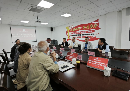 2023年10月26日,艾迪康医学检验中心潘超、邓飞博士一行莅临我院考察交流。学院党委书记周万津,院长葛正龙,副院长欧刚卫、冯正中,院长助理刘士成,临床学院院长陈双华出席座谈会。教务处和临床学院相关工作人员参加座谈。