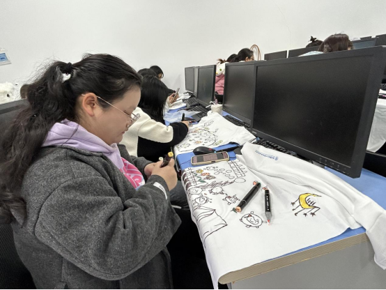 本次活动邀请同学们以“心中的花园”为主题设计T恤图案,运用不同的辅助工具辅助设计,并亲手绘制在T恤上。经过周密的部署,900名学生在实验助理的指导下,有序按照创作流程进行T恤图案设计。一件件T恤呈现的是学生心中最美的花园,表达的是学生内心最真实的世界,充满生机活力。此次活动实现了“关注自我,激发创意;艺术赋能,从心出发”的设计目的。在给定的时间里,同学们将心注入,巧思妙想。一幅幅作品呈现出非凡的想象力,是自我情感的真实表达。活动结束后,同学们仍然沉浸其中,意犹未尽。