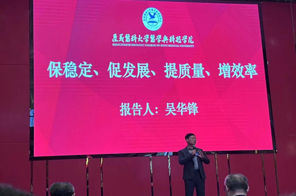 智能信息工程学院副院长吴华锋作题为《保稳定、促发展、提质量、增效率》的经验分享。他表示,学院管理不是一个人在战斗,而是大家共同努力的结果,所以在营造良好的工作氛围的同时要合理使用人工智能技术等,既能提高办公效率,又能提升工作质量。