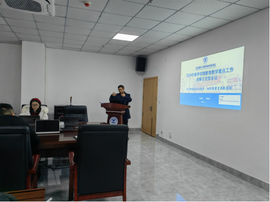 会上,张朝伟对本次会议召开的背景和意义进行介绍,他结合学院2018-2023年教学工作总结会议上院领导的主题报告和加快推动学院高质量发展建设方案文件内容,梳理了学院在2024年春季学期教育教学工作的重点内容:一是科学论证专业建设工作,完成全院学科专业布局梳理;二是推进完善学院高质量发展方案,部署各项指标的细化工作及完成时间节点;三是做好开学工作安排,提醒师生注意课堂时间和交通情况,做好开学教师、学生的管理和服务工作;四是围绕学院发展定位,凝练二级学院特色和学科专业特色。会后,教务处副处长陈丹对我院“一轴三维度”人才培养和“四位一体”校园文化建设等教育教学理念进行了宣讲。