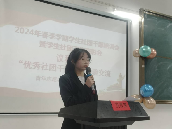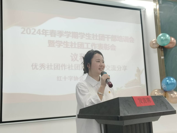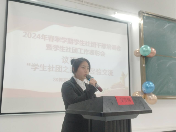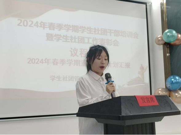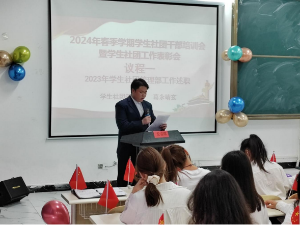 首先,由学生社团管理部执行主席葛永靖玄作学生社团2023年工作总结,李桃欢作2024年春季学期重点工作计划汇报,优秀社团社长代表王侦银作社团建设经验交流分享,优秀社团干部代表、“学生社团之星”代表、“优秀志愿者”代表作志愿服务工作经验交流分享。其次,表彰年度“优秀学生社团、优秀学生社团社长、优秀学生社团干部、学生社团之星、优秀志愿者”。最后,会议要求围绕学生社团强化思想引领,切实提升学生社团育人实效;聚焦职能定位,强化社团管理;强化社团责任担当,合理规范运营,推动全院学生社团管理规范化、科学化发展;牢固树立社团活动品牌意识,注重活动品牌培育等方面进行专题培训。