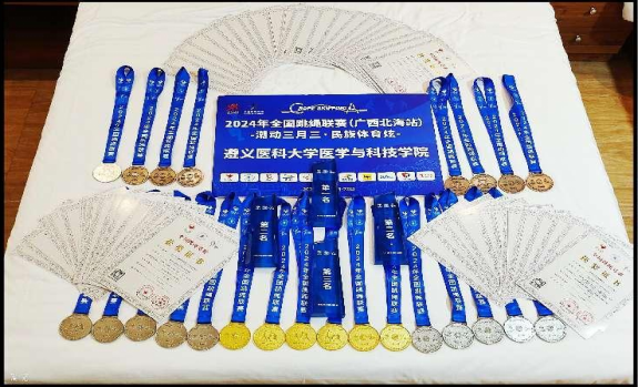 2024年4月21日下午,2024年全国跳绳联赛(广西北海站)落下帷幕,我院花样跳绳队取得7金7银6铜以及小型表演赛亚军的好成绩,充分展示了遵医beat365学子的风采。