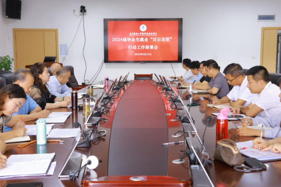 2024年5月31日上午,学院召开2024届毕业生就业“百日攻坚”行动部署会。学院党委书记、常务副院长周万津,院长葛正龙,副院长冯正中、欧刚卫出席会议,各部门、二级学院负责人,毕业班辅导员及招生就业处就业工作人员参加。会议由招生就业处处长王淏主持。