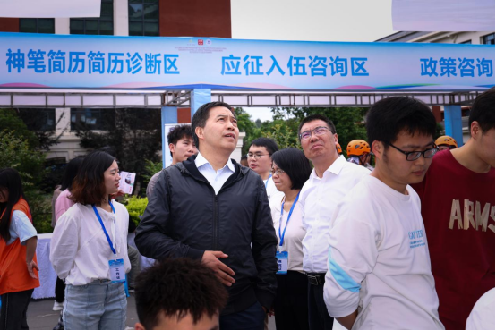 双选会期间,贵阳市政协党组成员、秘书长何发兵,副秘书长覃永伦,遵义市就业局四级调研员艾素文,以及学院党委书记、常务副院长周万津来到现场指导工作。学院领导现场访企拓岗,与用人单位代表进行充分交流,详细了解招聘需求情况及对我院人才培养提出的意见和建议,并对社会各界关心支持我院毕业生就业工作表示感谢。