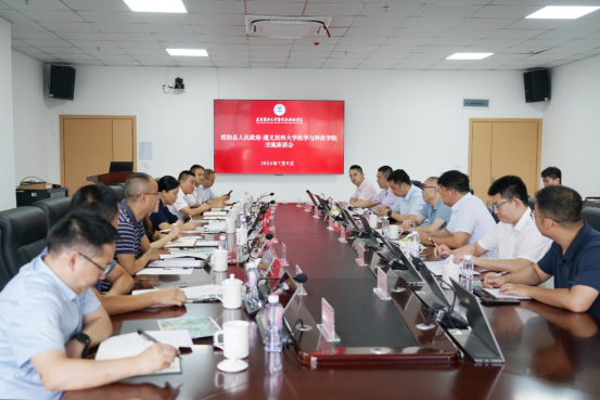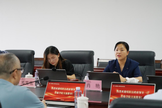 葛正龙院长对肖县长一行来访表示欢迎,并介绍了学院发展历程、历史沿革和办学情况等。肖县长对绥阳县基本情况进行介绍,并表示绥阳高度重视教育医疗工作,欢迎遵义医科大学医学与科技学院到“诗乡”就教育教学、康复养老等相关项目开展深入合作。
