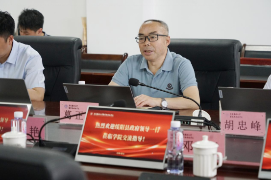 2024年7月10日下午,绥阳县人民政府副县长肖艳一行到我院考察交流。学院院长葛正龙,副院长胡忠峰,党委副书记、副院长王中磊及理事会部分管理干部出席座谈会。会议由学院副院长胡忠峰主持。