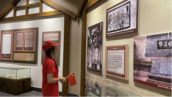 在苟坝会议会址,青瓦片、雕花窗、白粉墙,这些古老的建筑见证着曾经的峥嵘岁月。实践队员在会址重温入团誓词,踏着革命先辈曾经的脚印,真切体会在艰苦卓绝的斗争环境下革命先烈不屈不挠的革命精神,深刻认识革命胜利和幸福生活的来之不易。