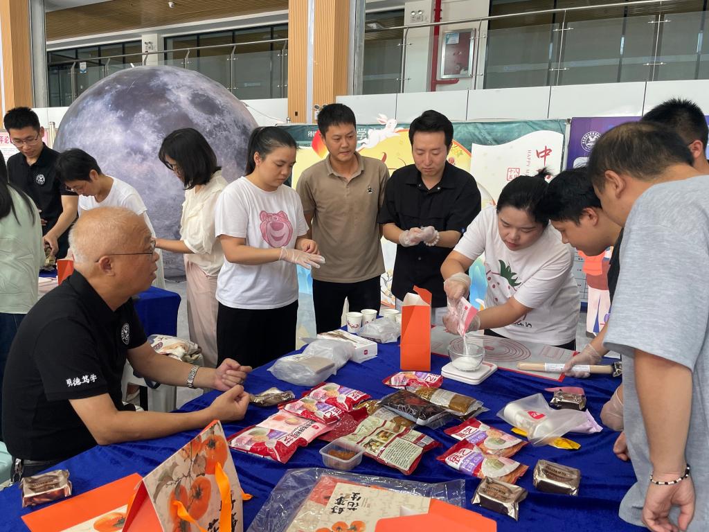 在中秋佳节来临之际,为弘扬中华优秀传统文化,增进教职工之间的情感交流,营造浓厚的节日氛围,学院于9月10日下午在图书馆一楼大厅举办制作冰皮月饼活动。学院院长葛正龙,党委副书记、副院长王中磊,副院长欧刚卫,工会主席谭飞、副主席汤佰东及学院100余名教职工参加。