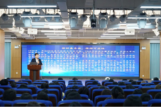 10月14日上午,学院图书馆汇报厅内气氛热烈。学院党委副书记、副院长王中磊为300余名新生讲授“开学第一课”,主题为“修好人生基本面,蓄深养厚天地宽”。