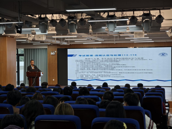 培训会上,张朝伟副院长与易晓东老师结合我院教育管理实际情况,重点围绕学籍管理、学籍信息更改流程、考试管理规定解读、成绩管理与学位授予等多个方面,对《学生手册》相关内容进行了系统详细的讲解,帮助2024级新生了解规章制度以及行为准则,引导新生养成良好的学习与生活习惯。