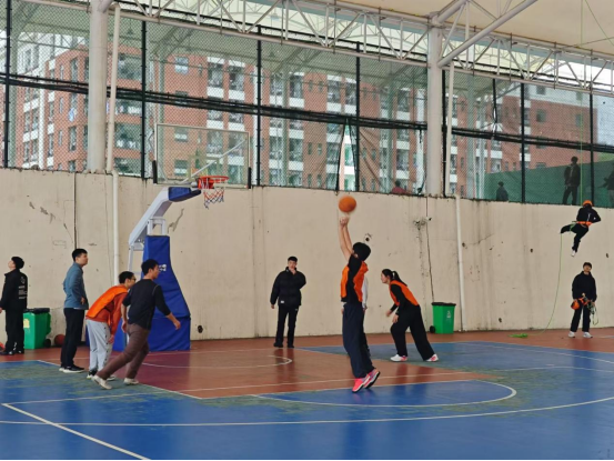 篮球场上,教职工们每一次的传球、运球都展现出团队协作的默契,犀利的突破和精准的投篮更是赢得现场观众的阵阵喝彩。双方队伍你追我赶,比分交替上升,激烈的对抗将比赛气氛推向高潮。