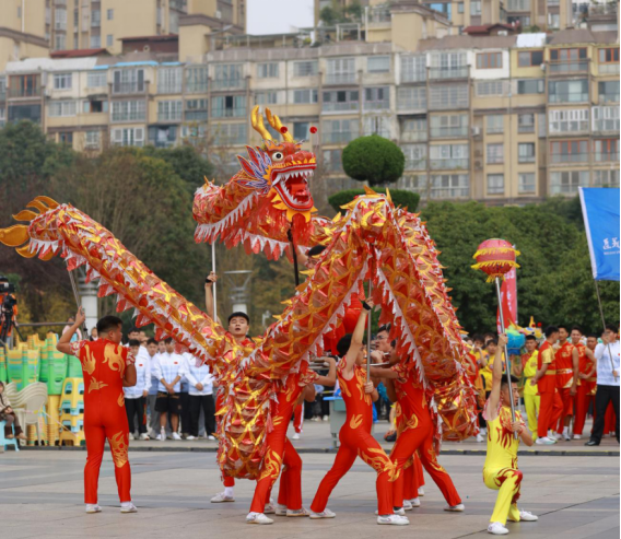 2024年11月15日至18日,“我要上全运”第十五届全国运动会群众展演舞龙舞狮项目贵州选拔赛暨2024年贵州省舞龙舞狮公开赛在黔南州瓮安县渡江广场隆重举行。本次赛事由贵州省体育局、省体育总会联合主办,来自全省的45支队伍共计850名运动员参赛,其中包括26支公开赛队伍和19支地方展演队伍。