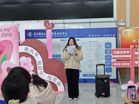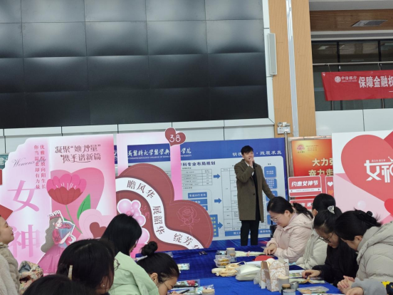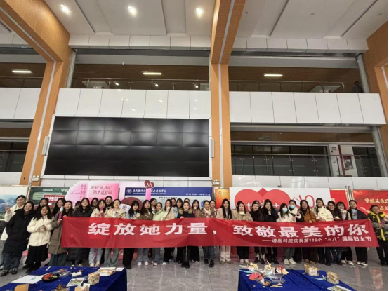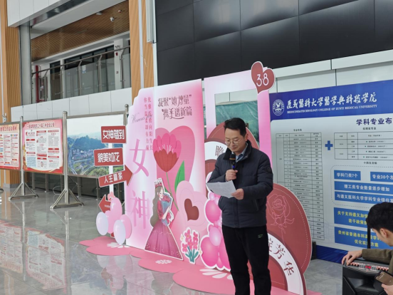 为庆祝2025年第115个“三八”国际妇女节的到来,营造尊重女性、关爱女性的校园文化氛围,2025年3月7日上午,学院在图书馆一楼大厅举办了主题为“绽放她力量,致敬最美的你”的妇女节系列活动。活动吸引了全院女教职工、遵义医科大学及外聘女教师参与,通过丰富多彩的环节展现女性风采,传递温暖与祝福。