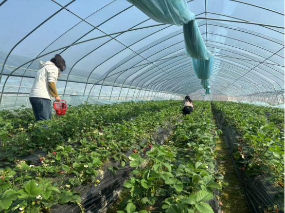 翠绿的草莓植株间,鲜红饱满的果实如红宝石般点缀,在专业农业人员的指导下,教职工们穿梭于地垄间,亲手采摘新鲜草莓,交流生活工作趣事,现场气氛热烈融洽。