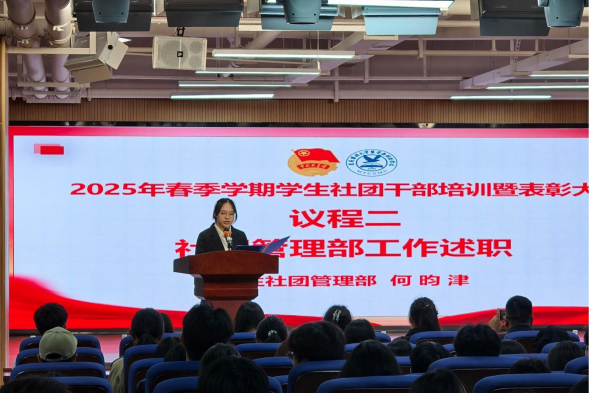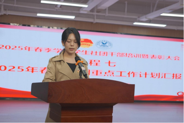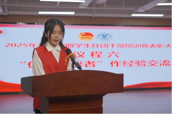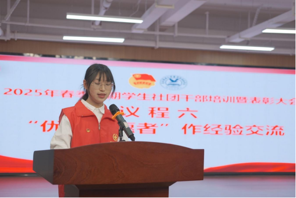 会上,学生社团管理部作学生社团管理工作、2025年春季学期重点工作计划汇报。优秀学生社团社长代表、优秀社团干部代表、学生社团之星代表、优秀志愿者代表分别做经验分享交流。