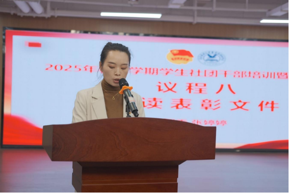 院团委张婷婷老师宣读表彰文件,并对优秀学生社团、优秀学生社团社长、优秀学生社团干部、学生社团之星、优秀志愿者进行表彰。