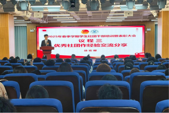 2025年3月27日下午,学院团委在图书馆多功能报告厅召开2025年春季学期学生社团干部培训会暨学生社团工作表彰会。院团委全体老师、学生社团管理部全体工作人员、各学生社团社长及社团骨干等380余名社团干部参加会议。