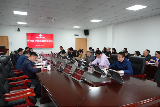 2025年4月23日,遵义医科大学党委书记刘文,党委委员、副校长赵继锋莅临学院调研指导并召开座谈会。遵义医科大学党委学校办公室主任刘伟,发展规划处处长刘涛,机关党委正科级组织员杨俊伟陪同调研。