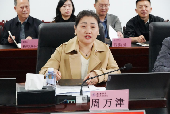 学院党委书记、常务副院长周万津围绕“高质量党建引领高质量发展” 主线,就党建工作情况进行汇报。她从思想建设、组织建设、党风廉政建设以及服务师生等方面,详细介绍了学院党委在落实立德树人根本任务、推动党建与业务融合方面的具体实践。她表示,学院党委始终以高质量党建为引领,为学院各项事业发展提供坚强政治保障。