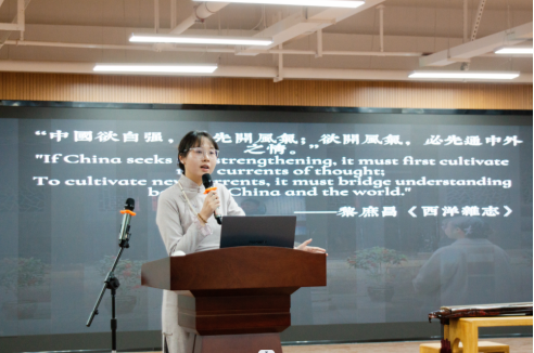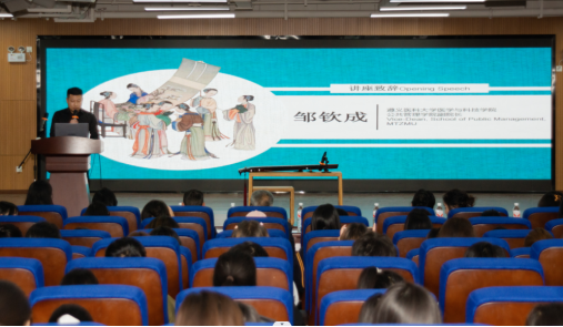 讲座伊始,公共管理学院副院长邹钦成上台致辞。他强调了古琴文化双语讲座在传承和传播中华优秀传统文化以及在全球化时代背景下讲好中国故事和推动我院美育工作中具有现实意义。