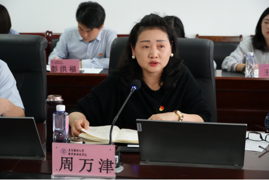 学院党委书记、常务副院长周万津代表学院对遵义师范学院一行表示热烈欢迎。她详细介绍了学院的历史沿革、专业建设及党建工作情况,指出此次结对共建是两校贯彻高校党建工作要求、服务地方发展的重要实践,通过“六联”机制搭建起“教育强基”与“健康守护”的合作桥梁。强调两校使命相通、资源互补,共建工作是落实省委部署的创新举措。提出,双方要紧扣“六联”目标任务,深化两校特色融合,打造具有示范效应的党建品牌,为黔北地区经济社会发展注入新动能。