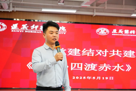 2025年5月19日,我院与遵义师范学院开展的党建结对共建活动在图书馆6楼举行。由遵义师范学院党委宣传部副部长叶颖、音乐舞蹈学院党总支副书记安华文带队,遵义师范学院音乐与舞蹈学院的师生团队走进我院,以一场震撼人心的红色舞剧《长征•四渡赤水》,带领我院300余名师生重温革命历史,感悟长征精神。