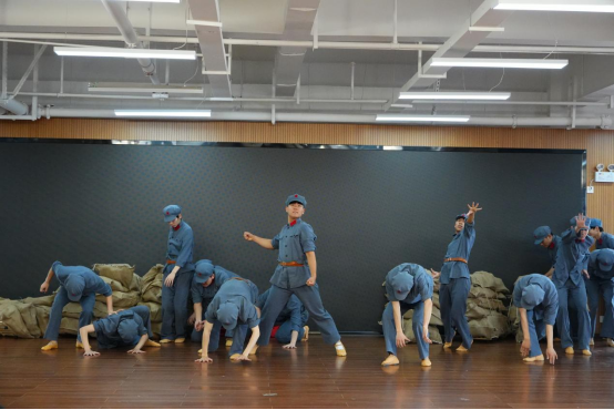 上午十时许,灯光亮起,舞剧在激昂的背景音乐中拉开帷幕。演员们以群舞的磅礴气势展现红军的机动性与凝聚力,以独舞的细腻刻画突出人物的内心世界。舞台上,每一个翻滚、跳跃都充满了力量感,演员们通过舞蹈艺术的独特语言,生动再现了1935年中央红军四渡赤水的荡气回肠和永垂不朽的长征精神。