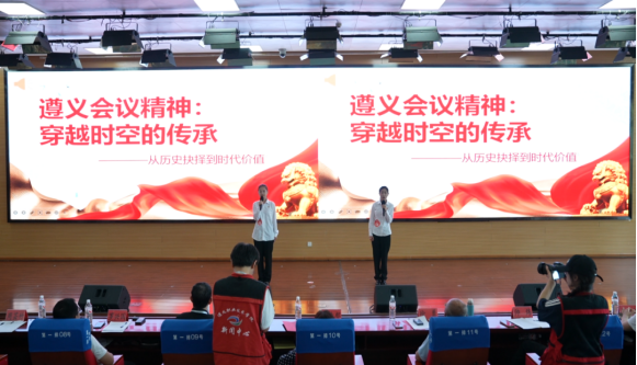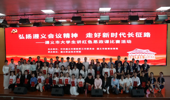 为深入弘扬遵义会议精神,2025年6月13日上午,由遵义市委教育工委、市教体局联合主办的遵义市大学生讲红色思政课比赛在遵义职业技术学院举行。来自7所高校的20支队伍同台竞技,我院选派校赛晋级的3支队伍参赛,由学生工作部(处)与马克思主义学院教师全程指导。