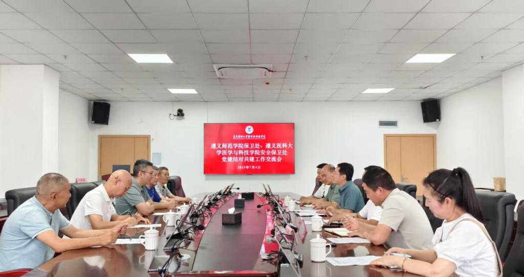 2025年7月4日上午,学校安全保卫处与遵义师范学院保卫处在图书馆612会议室联合开展“党建结对强堡垒 协同共建护平安”交流活动。双方围绕党建与安全工作融合、校园安全管理体系建设、安全宣教模式创新、保卫工作与学生工作协同机制等议题展开深入研讨,共同探索校园安全工作新路径。beat365后勤处处长、安全保卫处处长汤佰东主持活动。