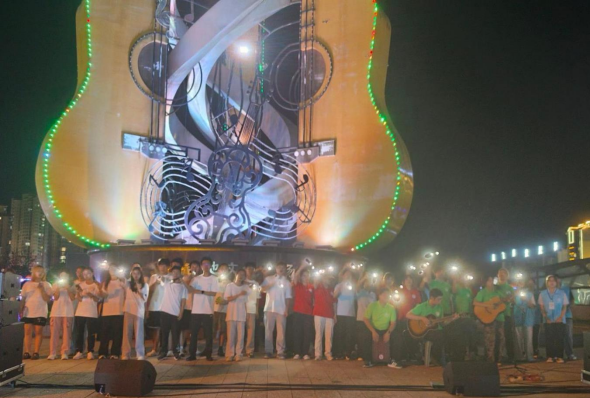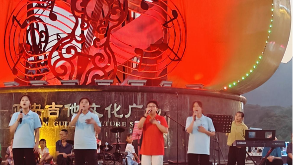 医养健康学院唐语:舞台之上,红旗迎风飘扬,灯光聚焦时,我们以自信的姿态在正安广场奏响青春乐章,作为“吉他之乡”,这里的每一根琴弦都跃动着文化的脉搏,指尖拨动琴弦,歌声传递温暖,我们与乡亲们的心随旋律共振——文艺不仅是舞台的流光,更是连接城乡的文化纽带。