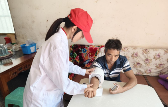 基础医学院药学黄临杰:为大爷大妈测血压时,趁机讲解控盐限油的技巧,给糖尿病患者画饮食金字塔,教他们看懂血糖指标,谈及夏季蛇患,老人们围过来听我们演示防蛇药使用、被咬后急救步骤,一位婆婆拉着我的手说:“这些比药还管用!”此刻明白,健康宣传不只是传递知识,更是用耐心搭建信任的桥梁,让科学健康守护走进乡村的日常,这便是医者仁心最实在的模样。