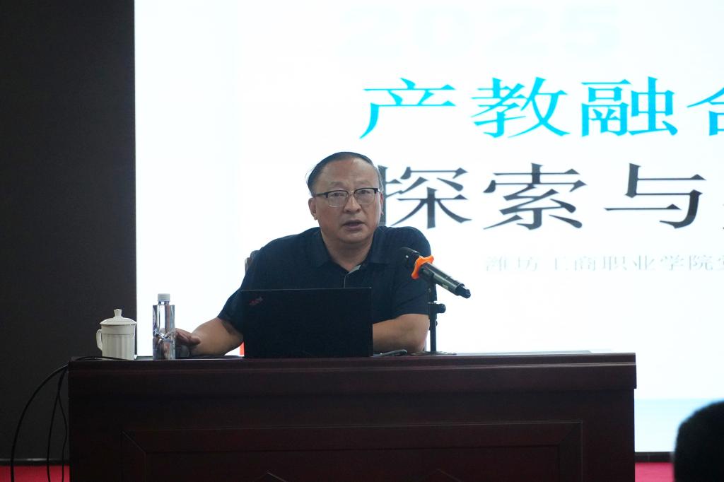 潍坊工商职业学院副校长兼经济学校校长唐德良分享“产教融合模式探索与实践”,从政策理论到实践探索,从经验启示到未来展望,深入剖析了产教融合的政策背景、实践探索与未来展望。