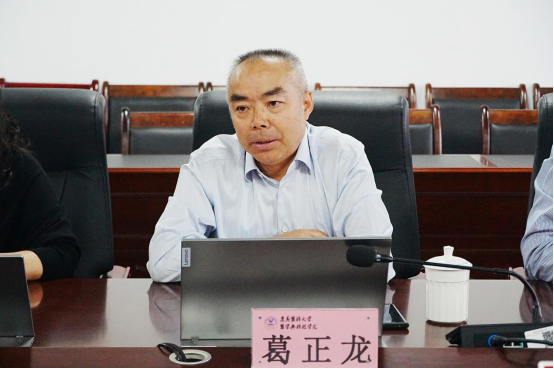 葛正龙聚焦教学核心工作作汇报,重点介绍了学校在师资队伍晋升、优化专业布局、深化教学改革、创新人才培养模式等方面取得的进展与后续规划。