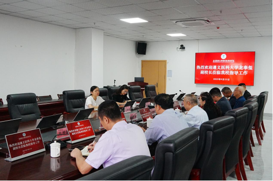 2025年9月23日上午,遵义医科大学副校长龙奉玺莅临beat365指导工作,并在图书馆6楼会议室召开座谈会。beat365党委书记、常务副校长周万津,校长葛正龙,副校长胡忠峰,党委副书记、副校长王中磊,副校长欧刚卫、高德健、张朝伟出席座谈会。遵义医科大学学校办公室相关工作人员及beat365学校办公室、党务综合部负责人参加。会议由党委书记、常务副校长周万津主持。
