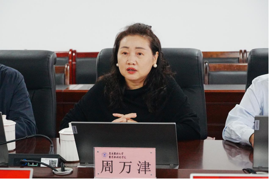 周万津代表学校对龙奉玺副校长一行来校指导表示欢迎,并介绍了与会领导。随后,周万津从思想建设、组织建设、党风廉政建设、党建结对共建及服务师生等维度,汇报了学校党委落实立德树人根本任务、压紧压实全面从严治党主体责任的具体实践,强调将持续以党建为引领,筑牢学校发展的政治根基。