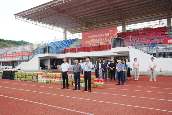 随后,校领导与陪同人员一同为新生们分发慰问水果。一箱箱、一袋袋满载着学校关爱与鼓励的水果送到同学们手中,现场气氛温馨而热烈。