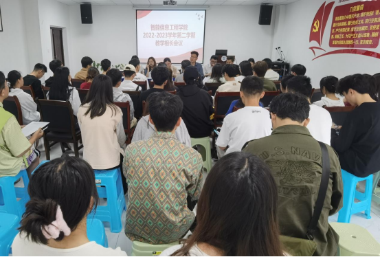 2023年4月18日,智能信息工程学院召开2022-2023学年第二学期教学相长会,智能信息工程学院副院长吴华锋、各教研室负责人、院系秘书及2020-2022级各专业班级代表参加会议。会议由教务科负责人骆妮主持。