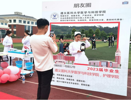 本次活动现场设置护理临床工作场景展、院徽院训设计比赛作品展、毕业主题背景板等打卡点供同学们参观浏览,强化了护理学子的专业认可度和职业认同感。