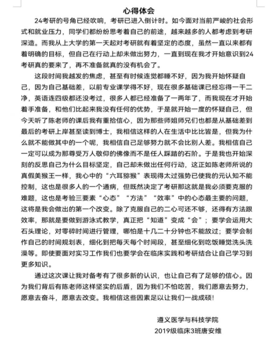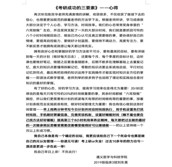 2018级临床医学专业王正明同学做考研上岸经验分享