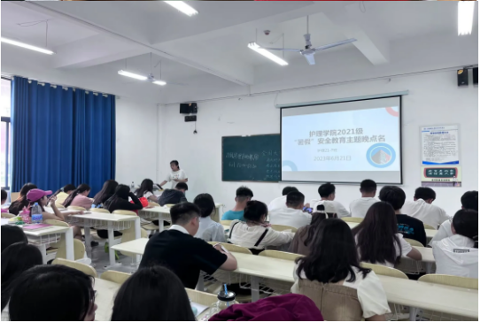 为切实提升学生身体素质,增强安全意识、责任意识,确保学生度过一个安全、文明、健康、愉快的暑假生活,2023年6月20日,护理学院于在教学楼阶梯教室开展第四次主题晚点名活动,活动由王力、钟娜娜老师主持。