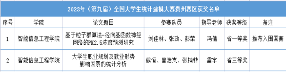 2023年6月21日,由中国统计教育学会主办、贵州财经大学承办的2023年(第九届)全国大学生统计建模大赛省赛圆满结束。大赛经报名、审核、主题解读、线上专家评分和省赛区答辩等环节,评选出省一、二、三等奖的作品,以及进入国赛的16支队伍。智能信息工程学院学子荣获贵州省一、三等奖,其中一等奖作品被推荐入围国赛。