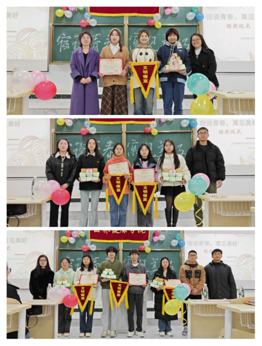初赛环节,评委老师按照文明寝室评分标准,记录和评估各学生寝室的卫生和文化状况,14个寝室脱颖而出进入决赛。随后,入围选手们通过PPT、视频等形式展示寝室风采。评委老师根据创意、整洁、美观等方面进行综合评价。最终,女生寝室2406获得一等奖,2426、3227获得二等奖,女生寝室2409、3216和男生寝室1439获得三等奖。